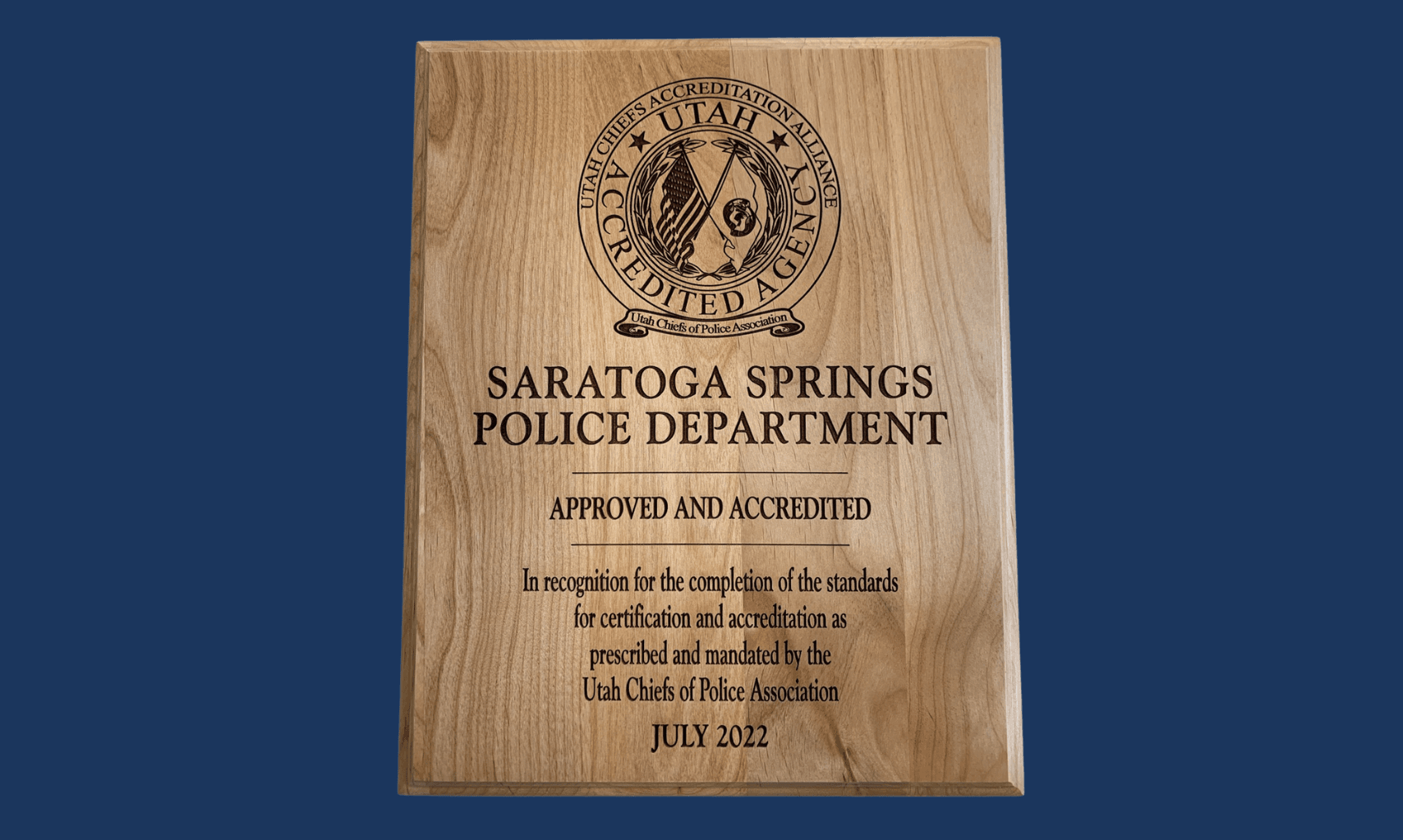 The Saratoga Springs Police Department is a team committed to protecting our City’s quality of life. Team members serve the community with pride and integrity, and maintain the highest levels of appearance, training, and skills.